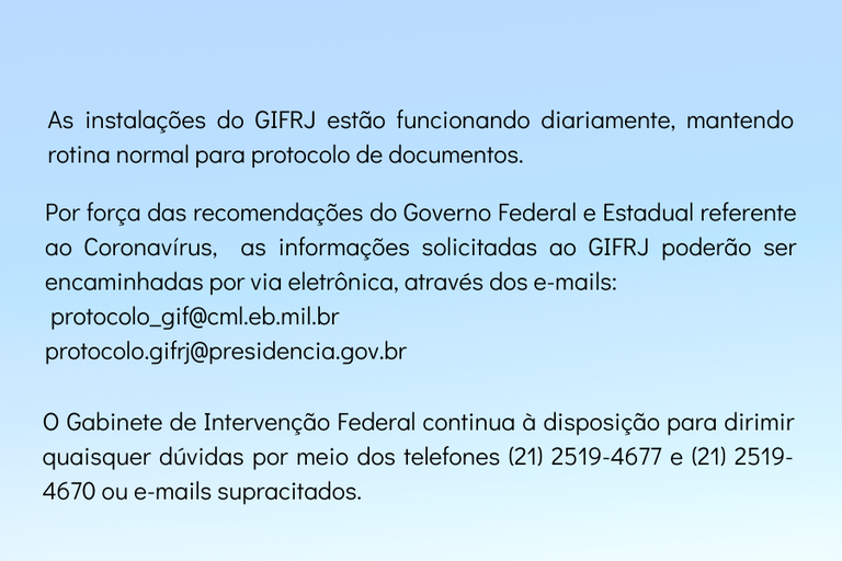 Funcionamento e contato do GIFRJ durante a pandemia do coronavírus.